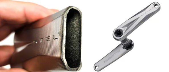 此次合作的成果是Stellar Ti曲柄組——一款一體式中空鈦合金部件,兼具卓越的性能和制造工藝。其重量?jī)H為345克,并通過(guò)了ISO級(jí)疲勞測(cè)試,Alugear稱之為“業(yè)界首創(chuàng)”,實(shí)現(xiàn)了可大規(guī)模生產(chǎn)、3D打印和全CNC加工的鈦合金曲柄組。