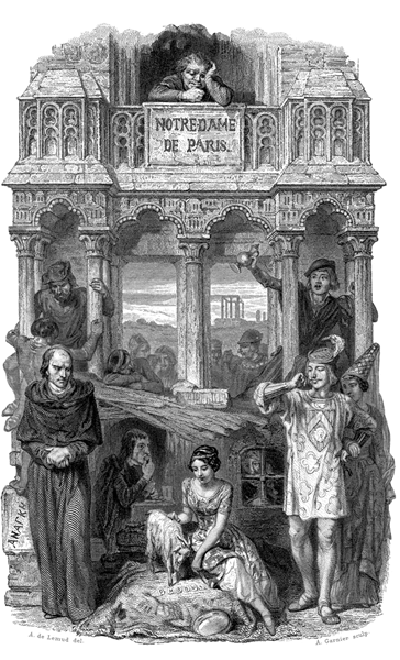 雨果筆下的《巴黎圣母院》是一個(gè)關(guān)于美與丑、善與惡的故事。吉卜賽少女愛(ài)斯美臘達(dá)在街頭賣藝,圣母院教堂副主教克洛德·弗羅洛欲占為己有,后來(lái)發(fā)現(xiàn)她另有情人,又刺殺她的情人并嫁禍于她,致使她被判死刑。相貌奇丑、對(duì)她充滿愛(ài)慕和謙卑之情的敲鐘人卡西莫多把她救到圣母院避難??寺宓隆じチ_洛把她劫出,威逼她屈從。遭到拒絕后,克洛德·弗羅洛把她交給官兵,在圣母院樓上看著她被絞死??ㄎ髂嘣诮^望中憤怒地把撫養(yǎng)他長(zhǎng)大的克洛德·弗羅洛推下頂樓,自己則到鷹山地穴摟住愛(ài)斯美臘達(dá)的尸體,與她死在一起,完成了“婚禮”。