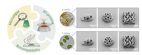 海德堡大學(xué)分子系統(tǒng)和先進(jìn)材料工程研究所的Eva Blasco教授領(lǐng)導(dǎo)的國際研究團(tuán)隊(duì)開發(fā)了第一種基于微藻的墨水,用于通過激光進(jìn)行復(fù)雜且生物相容性微結(jié)構(gòu)的3D打印。她指出,迄今為止,主要使用石化來源的聚合物,特別是用于生產(chǎn)微結(jié)構(gòu)所需的雙光子聚合。這些聚合物導(dǎo)致化石燃料的消耗、溫室氣體的排放,并且常常導(dǎo)致有毒成分的使用。另一方面,基于微藻的新型墨水代表了一種環(huán)保的替代品。